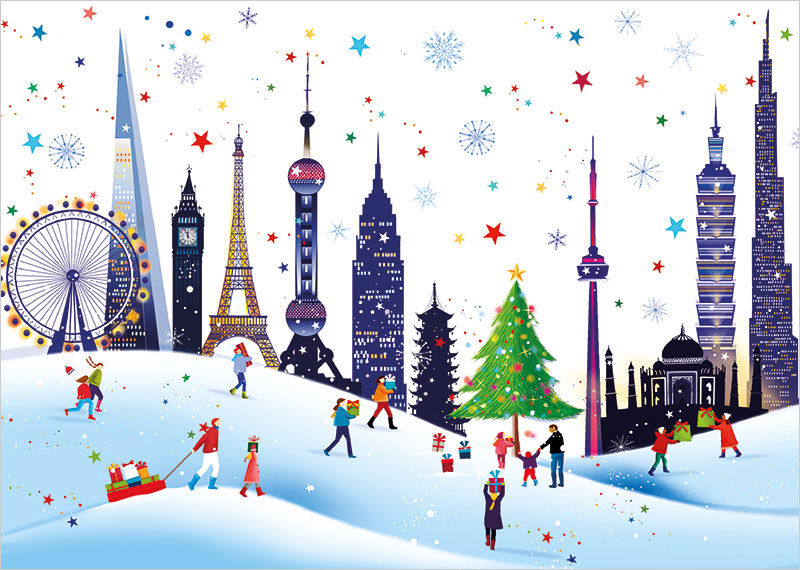 World Celebration are Gloss finished and suitable for corporate, business, company or personal use. 025-043 is a perfect choice for small to large companies. Our World Celebration Christmas cards are printed onto a premium thickness board, acquired only from sustainable sources and produced in the UK. Your inside personalisation is peronalised directly onto the card. World Celebration are sized at 210x148mm.